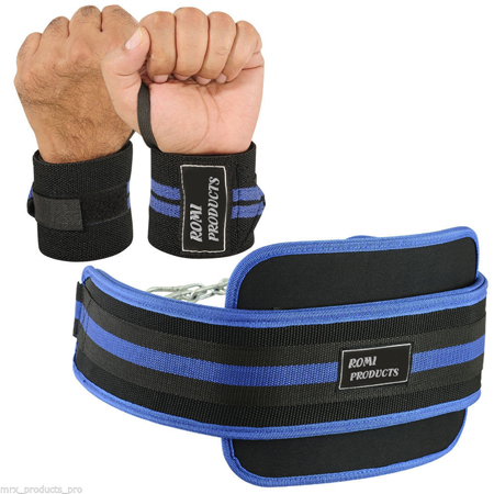 Power Weight Lifting Dipping Belt Wrist Support Wraps Bandage Set