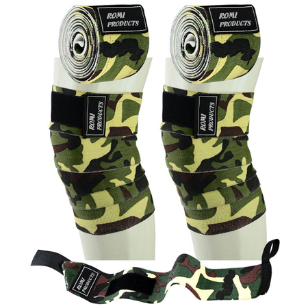 Weight Lifting Knee Wraps, Wrist Support Bandage Straps Pair Set, Camo Green